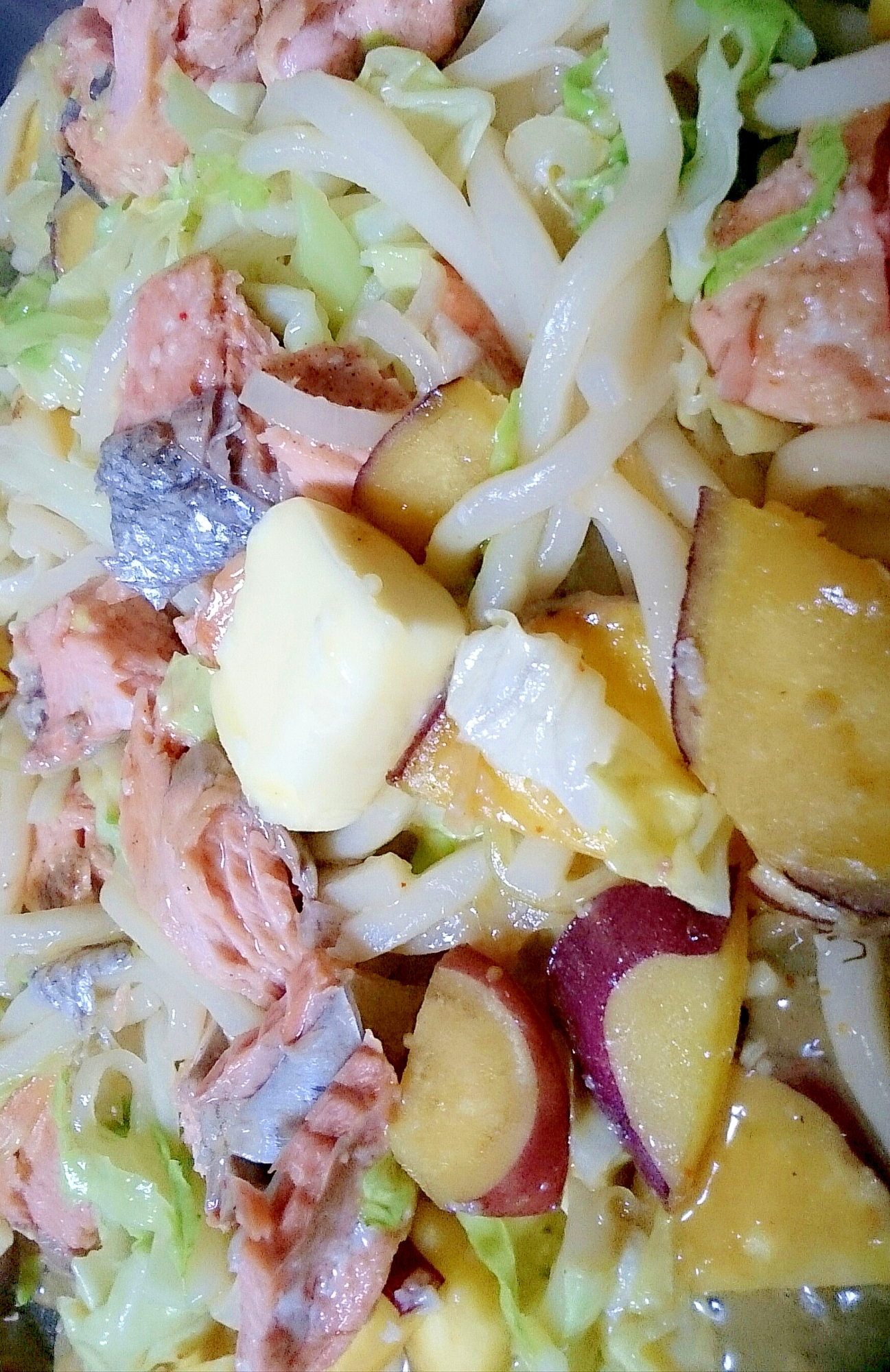 鮭のチャンチャン焼き シメの味噌焼きうどん c cママの日記
